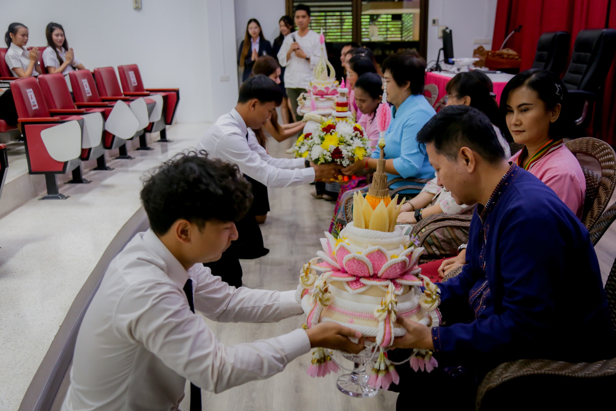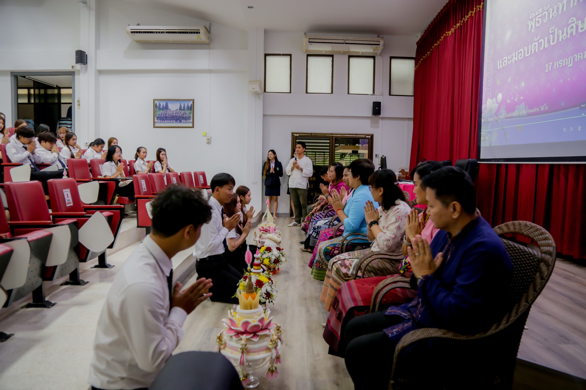 เมื่อวันที่ 17 กรกฎาคม 2568 รศ.ดร.กัสมา กาซ้อน คณบดีคณะบัญชี เป็นประธานในพิธี “วันทาคณาจารย์และมอบตัวเป็นศิษย์” ประจำปีการศึกษา 2568 พร้อมด้วยคณะผู้บริหารและอาจารย์ ร่วมรับ “พานไหว้ครู” จากนักศึกษาใหม่ด้วยความภาคภูมิใจ ในปีนี้ มีนักศึกษาชั้นปีที่ 1 เข้าร่วมพิธี จำนวนทั้งสิ้น 134 คน จากหลักสูตรบัญชีบัณฑิต (4 ปี และ 4 ปี เทียบโอน) โดยคณะได้จัดพิธี มอบเข็มสัญลักษณ์คณะบัญชี แก่นักศึกษาใหม่ เพื่อเป็นสัญลักษณ์แห่งความภูมิใจและจุดเริ่มต้นของการเป็นส่วนหนึ่งของคณะบัญชี และคณบดีได้มอบเกียรติบัตรแก่นักศึกษาที่มีผลการเรียนดี เกรดเฉลี่ยตั้งแต่ 3.26 – 3.80 รวมจำนวน 21 คน เพื่อเป็นกำลังใจนักศึกษา ณ ห้องบัญชี 1 คณะบัญชี มหาวิทยาลัยราชภัฏเชียงราย