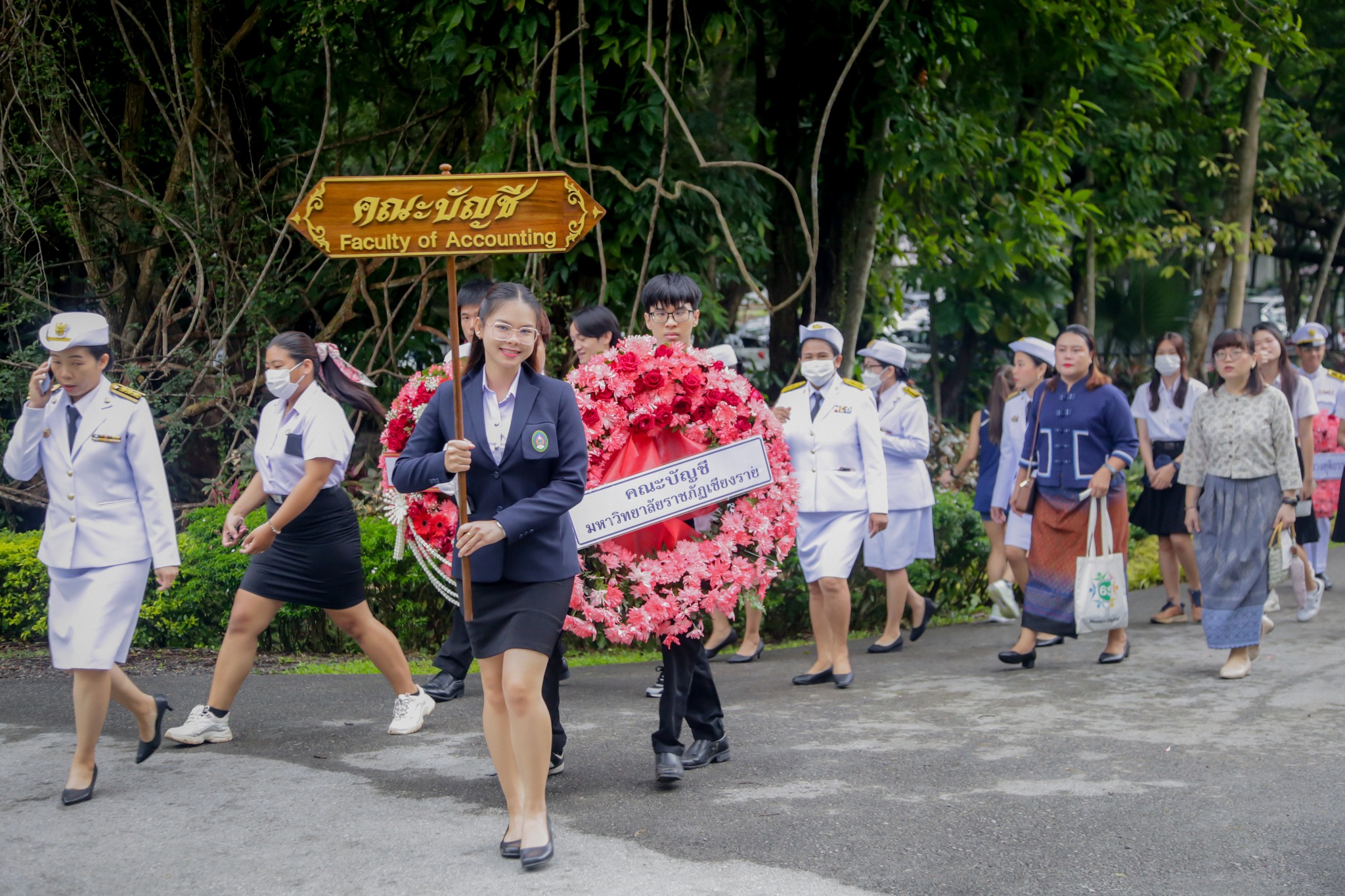 เมื่อวันพฤหัสบดีที่ 18 กรกฎาคม 2568 รศ.ดร.กัสมา กาซ้อน คณบดีคณะบัญชี มหาวิทยาลัยราชภัฏเชียงราย พร้อมคณาจารย์ บุคลากร และนักศึกษาคณะบัญชี เข้าร่วม พิธีตานหาแม่ฟ้าหลวง ถวายพวงมาลาสักการะแด่พระราชานุสาวรีย์ สมเด็จพระศรีนครินทราบรมราชชนนี เพื่อระลึกถึงพระมหากรุณาธิคุณ และแสดงความจงรักภักดีต่อสมเด็จพระศรีนครินทราบรมราชชนนีผู้ทรงเป็นที่เคารพรักยิ่งของปวงชนชาวไทย ณ ลานพระราชานุสาวรีย์สมเด็จพระศรีนครินทราบรมราชชนนี สวนสมเด็จพระศรีนครินทราบรมราชชนนีเชียงราย มหาวิทยาลัยราชภัฏเชียงราย